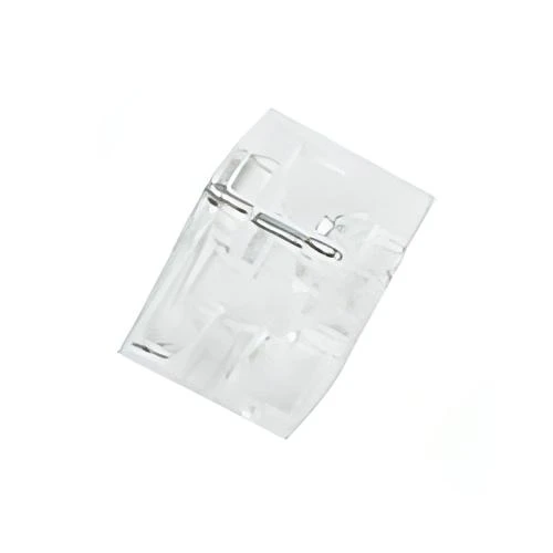 This invisible zipper foot which is made of clearview plastic is for sewing in an invisible zipper. This will make the zipper wholly hidden within the seam of the garment or home decoration.