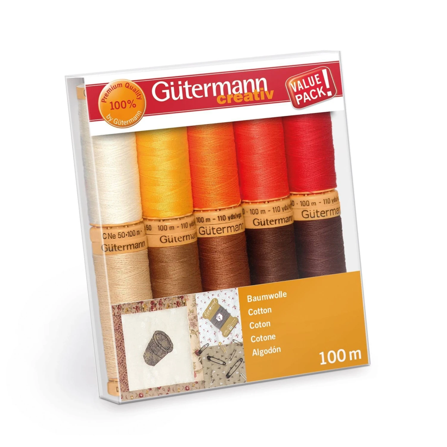 10 reels of 100m high quality, mercerized Cotton C No 50 in a mixture of shades, basic and bright. Perfect for patchwork and quilting.