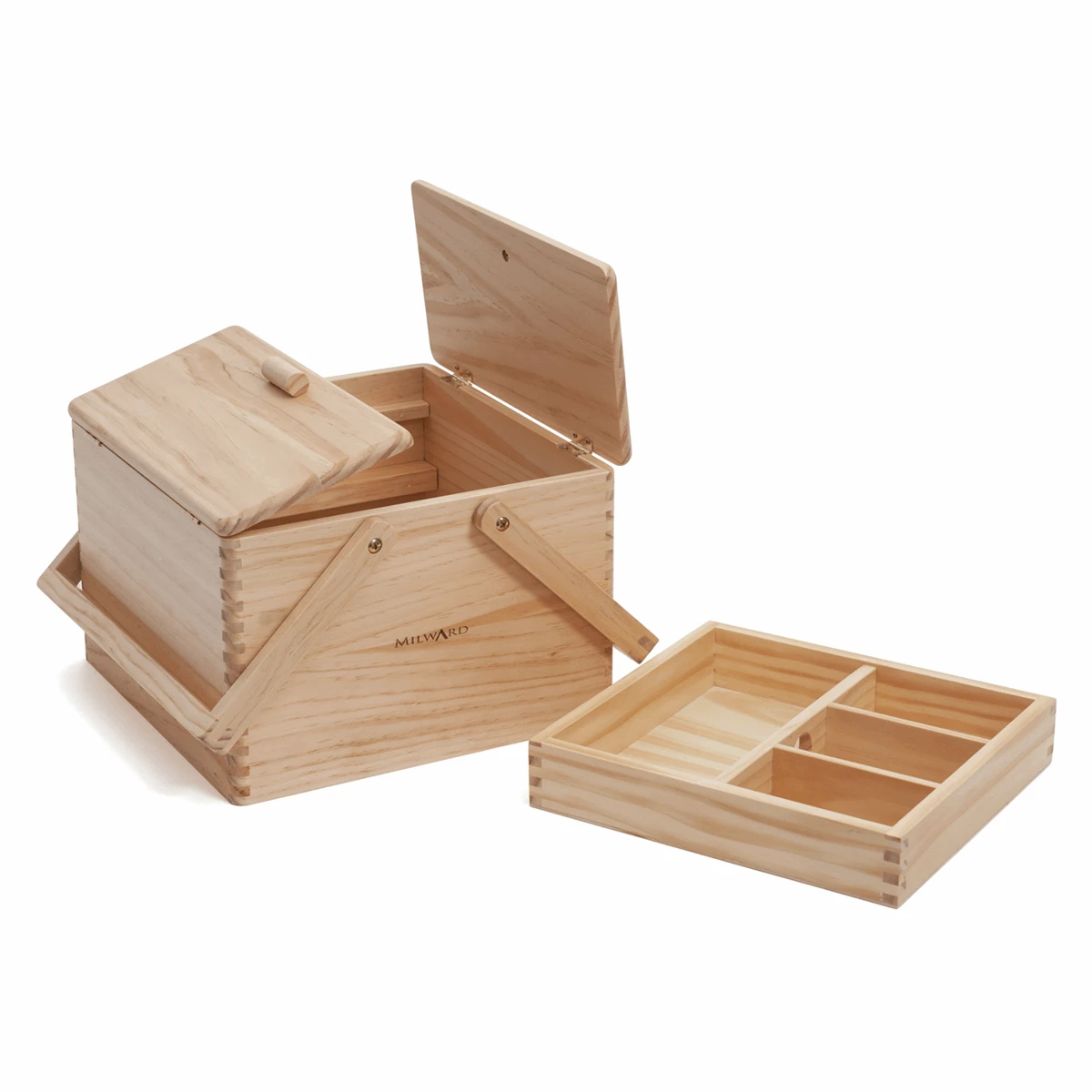 Includes inner accessories tray with securing clips. Made from pine wood. Finger joint construction. Laser etched with Milward logo.