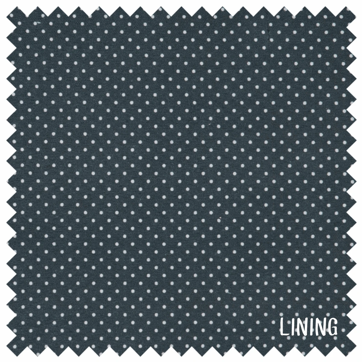 Tube-style yarn and knitting pin holder made from matt PVC coated cotton fabric. Zippered top. Eyelet hole to feed yarn through. Keeps yarn tidy and untangled and knitting pins safe. Wipe clean.